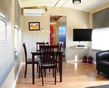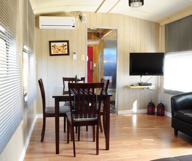 Nuestro vagón de ferrocarril ofrece dos departamentos únicos, ideales para familias o grupos, con acceso a todas las instalaciones del complejo y un ambiente especial.